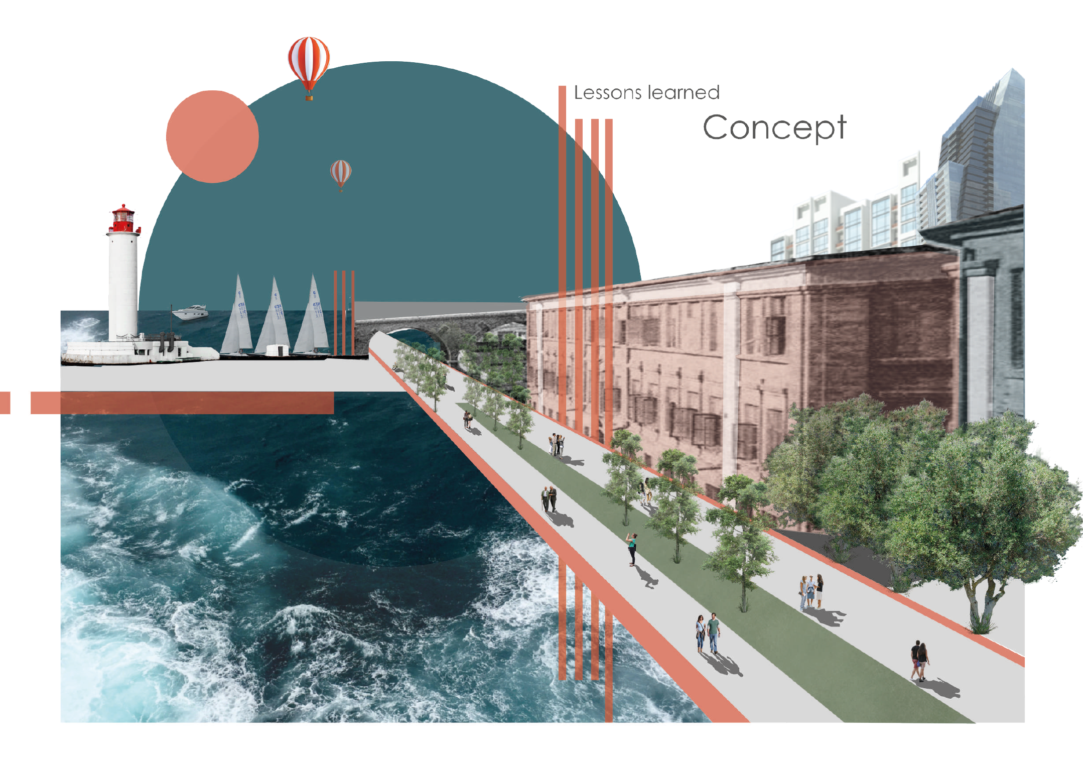 Task of the studio was to elaborate urban concepts that show future prospects for renovating a territory in Odesa's historical area, considering the possibilities for providing livable conditions, activity, and recreation for the city's inhabitants, not only of this neighborhood but also those who come here from other parts of the city and tourists. The renovation of Devolanivsky and Polsky Descents, Mytna Square, and Platonivsky Mole is a critical task for Odesa. These significant cultural and historical landmarks contribute to the city's unique character. However, over time, these areas have fallen into disrepair and require attention to preserve their cultural heritage. Moreover, these areas are essential links between the city's port, transportation hubs, and the historical center.