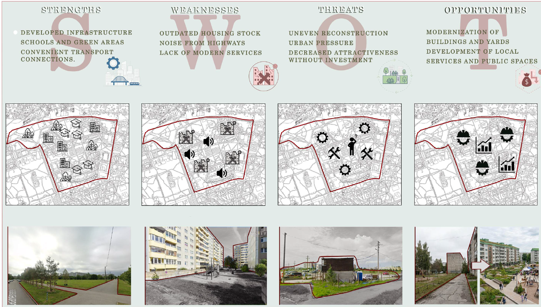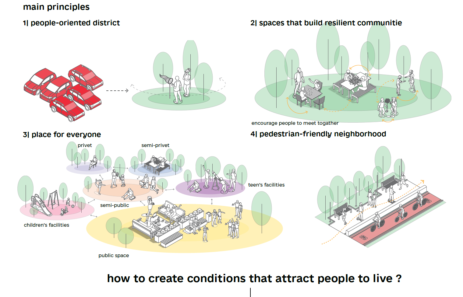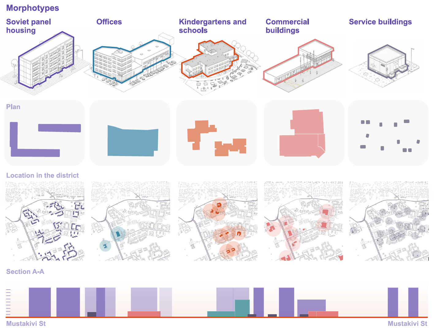 The concept proposes transforming Kuristiku into a human-centered, multifunctional neighborhood that improves quality of life while retaining its affordability. The strategy prioritizes pedestrian movement by reducing surface parking, relocating cars to the perimeter and multi-level decks, and reclaiming courtyards as communal spaces. Fragmented open areas are reorganized into a coherent public-space network that supports everyday social interaction and improves microclimatic comfort through increased greenery and wind protection. Community life is strengthened through activated ground floors, improved lighting, and the introduction of cultural, recreational, and commercial functions along a central promenade. Together, these interventions create a safe, inclusive, and lively district that supports local identity and serves as a contemporary model for post-Soviet neighborhood renewal in Tallinn.