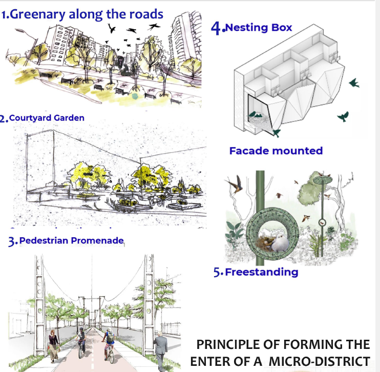 The concept proposes THE CONNECTOR as a continuous pedestrian spine that links fragmented green and recreational areas within the Kuristiku microdistrict. The strategy addresses poor pedestrian connectivity, dispersed open spaces, and microclimatic discomfort by transforming isolated parks and courtyards into a unified green ecosystem. A central alley becomes the backbone for movement, everyday recreation, and social interaction, supporting a 5-minute city model. Mixed-use ground floors, cultural pavilions, and local services activate the route, while multi-storey parking frees courtyards from cars. Landscape design and new building placement improve wind protection and comfort. Together, these interventions transform Kuristiku from a car-oriented “sleeping neighborhood” into an inclusive, walkable, and socially active district with a strong local identity.